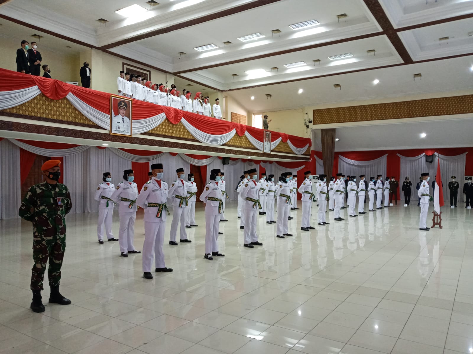 CYBER88 | Bandung -- Bupati Bandung Bapak H. Dadang Supriyatna, S.I.P.M.Si, mengukuhkan 35 putra dan putri sebagai Pasukan Pengibar Bendara Pusaka (Paskibraka) Tingkat Kabupaten Bandung, pada Hari Ulang Tahun (HUT) Ke-76 Kemerdekan Republik Indonesia. Acara ini berlangsung di Gedung Mohammad Toha Kabupaten Bandung, Jawa Barat. Senin (16/8/2021).