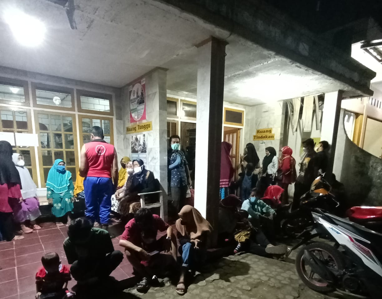 Pemantauan cyber88.co.id, Senin malam (15/11) di gerai vaksinasi dr. Wahyu, sejak pukul 19.00 Wib, terlihat beberapa warga berdatangan dan duduk-duduk di depan klinik dr. Wahyu untuk secara bergiliran menuju ruang registrasi, ruang screaning dan ruang vaksinasi.