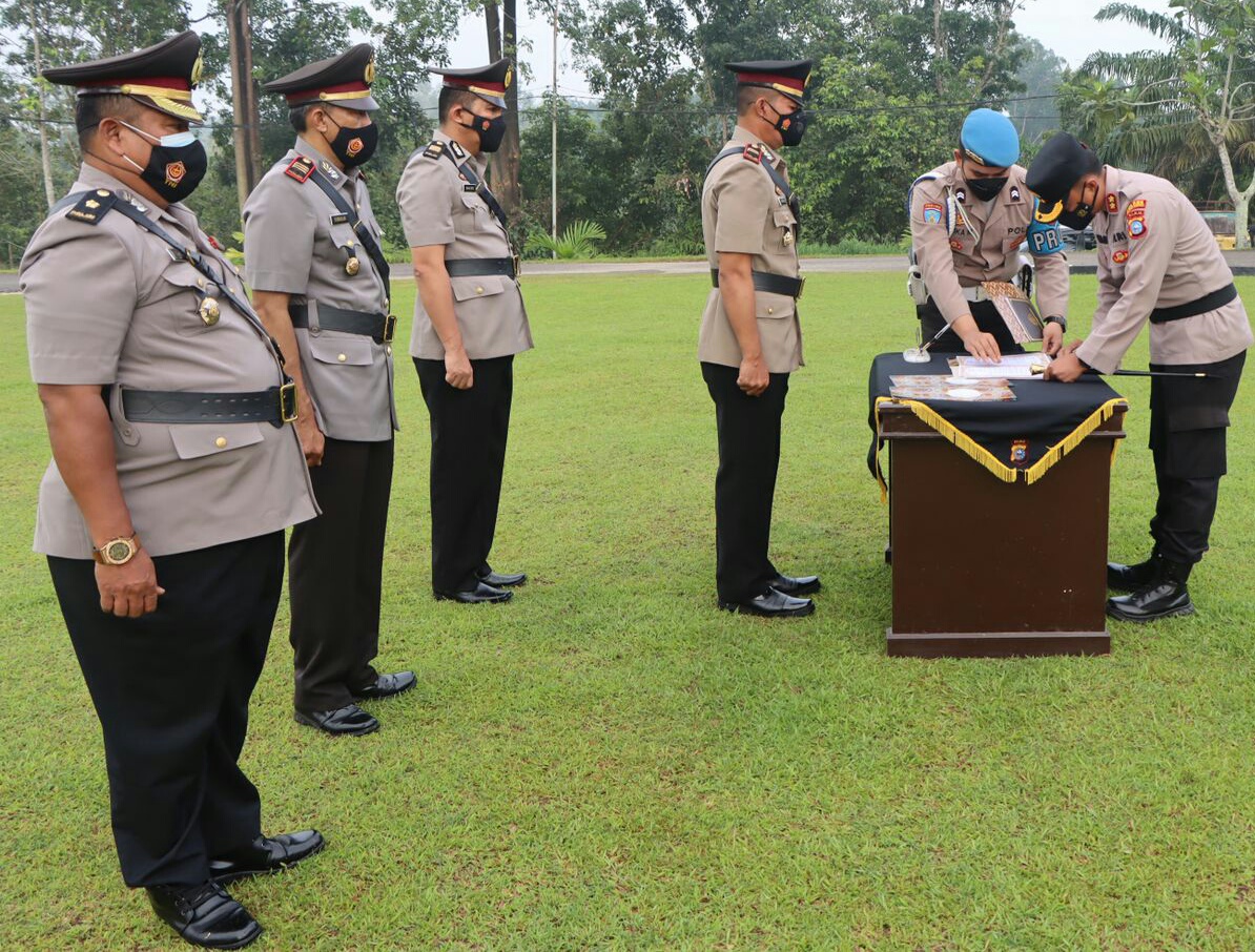 Kapolres Rendra Oktha Dinata Pimpin Upacara Sertijab Jajaran Polres Kuansing