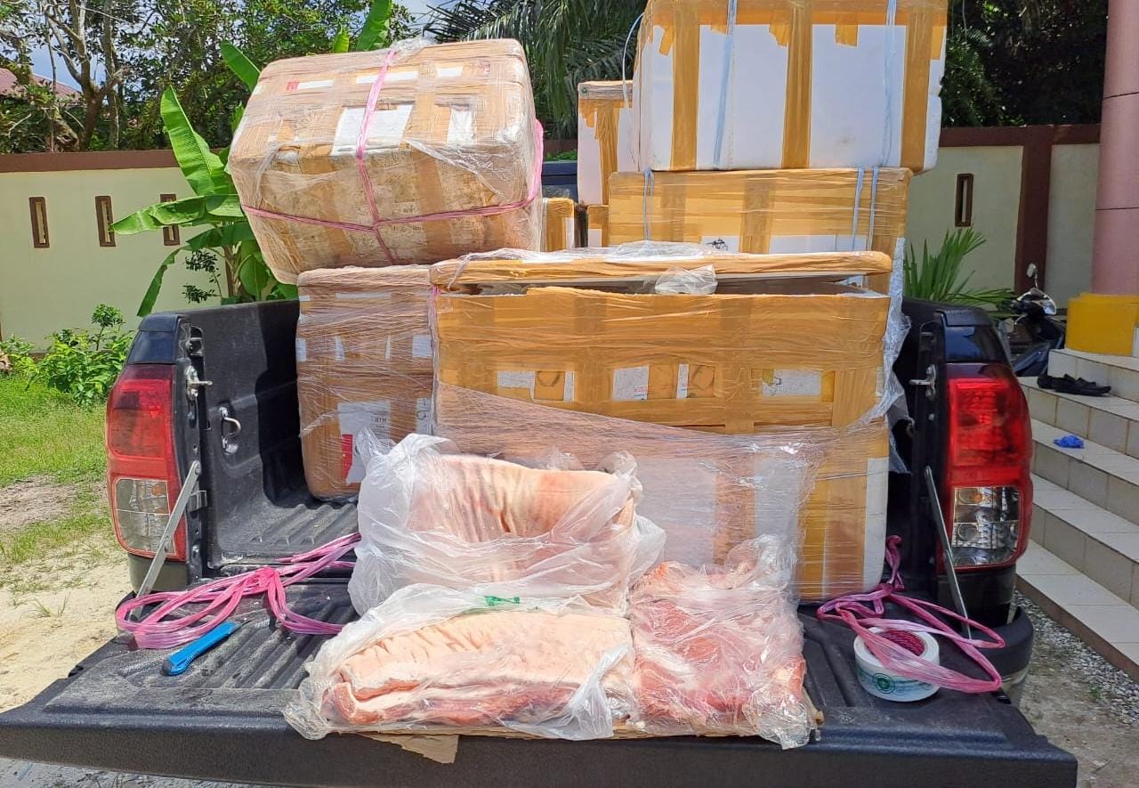 CYBER88 | Siak - Menindaklanjuti Informasi dari masyarakat tentang adanya pemasukan daging babi yang tidak memenuhi persyaratan karantina di salah satu pelabuhan di Kabupaten Siak, petugas Karantina Pertanian Pekanbaru wilayah kerja Tanjung Buton bersama Unit Reskrim Polsek Sungai Apit berhasil menggagalkan upaya pemasukan daging babi yang tidak dilengkapi sertifikat kesehatan dari daerah asal dan tidak dilaporkan kepada petugas karantina.